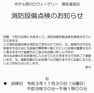 下記の日時におきまして、消防設備定期点検を実施させていただきます。